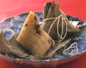 最大差別:溫水泡好棗,然后去籽剪成豆大顆粒,再與濾干的糯米混勻,至于調(diào)料方面,喜歡甜的可放些糖。 綠豆鴨蛋粽做法 糯米、綠豆各750克,花生米25克,熟咸鴨蛋黃5個。將蛋黃切碎與糯米、綠豆、花生拌勻成餡。取泡過的粽殼葉折成斗狀,填入適量餡料,包好后入鍋加冷水浸沒粽子,煮沸1小時后,改文火煮1小時即可。 皮牛肉粽做法 泡過的糯米、綠豆各1000克,牛肉、陳皮各100克,豬肉末50克,蔥末、姜末、食鹽適量。用豬油將蔥末炒黃,依次放入牛肉、陳皮、豬肉末炒半分鐘后,淋上麻油即成餡。包時先填進(jìn)拌勻的糯米、綠豆,將餡料夾在中間,再按上述方式煮熟。 百果粽子做法 糯米750克、青梅、菠蘿肉、冬瓜條各25克,西瓜子仁、核桃仁、葡萄干、紅絲各15克,白砂糖300克。先將青梅、菠蘿肉、冬瓜條各用白糖水煮,瀝干水分,然后用白糖腌漬24小時,即成餡。包成五角方底粽,煮50分鐘,離火燜4分鐘即成。 咸香雞肉粽 材料:糯米600克、雞肉800克、薯仔400克、蝦米80克、蒜蓉1湯匙、生抽半湯匙、蔥、鹽、雞精、生粉若干、粽葉適量、粽繩適量。 做法: 1、將雞肉、薯仔和大蔥頭剁碎,加入鹽、蒜、雞精、生粉等調(diào)料拌勻。 2、洗凈糯米,浸水半小時。燒熱鍋,用蔥姜蒜爆香,加入糯米和生抽,炒均。 3、用粽葉2張,折疊成漏狀,放入炒香的糯米1湯匙,加入做法1中扮勻的餡料,再加入1湯匙的糯米在上面。 4、將粽繩把粽子扎好,放入高壓煲中煮30分鐘,即可趁熱食。如果是普通煲須煮2小時左右。 裹蒸粽做法 材料: 1、糯米500克、干香菇1朵、蓮子4粒、蝦米10克、綠豆仁50克、栗子2粒、干荷葉1張、干竹葉6片、干堿草2條。 2、咸蛋黃1粒、胡椒粉少許、芋頭30克、排骨、肥肉約100克;五香粉、蔥油、味精鹽少許。 做法: 1、將用料1中的材料泡水至發(fā)起為止,其中尖糯米至少泡2個半小時以上,然后用胡椒粉、蔥油、味精、鹽來腌味。芋頭切塊炸過,備用。 2、將肥肉切塊用五香粉腌味約30分鐘。排骨切塊用黑醋、醬油、鹽、味精、面粉腌過備用。 3、將荷葉對撕,粗面朝下,鋪上3片竹葉,放一半的糯米。然后放入香菇、蓮子、蝦米、栗子、咸蛋黃、肥肉、排骨、芋頭、綠豆仁。再放上另一半糯米,將另外3片竹葉蓋上。 4、將荷葉左右兩側(cè)對摺抓緊,再前后對摺抓緊包成四角形,用堿草包緊打結(jié)即可。 5、用水煮粽子四小時即可上桌。